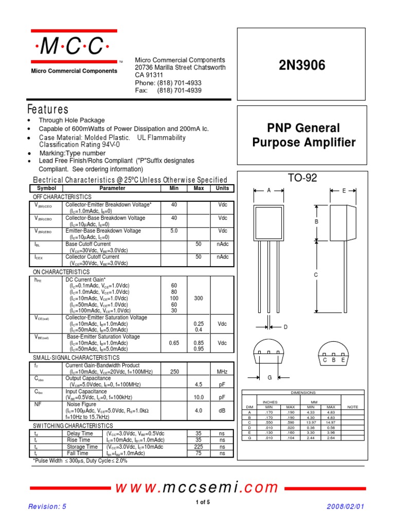 Datasheet 2n3906 PDF Bipolar Junction Transistor Capacitor