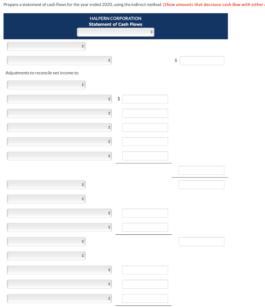 Halpern corporation statement of cash flows for the year ended december 31,. View halpern corporation.docx from accounting acd at universiti sultan. Instructions prepare a statement of cash flows in proper form for the year ended. 179 a comparative balance sheet for halpern corporation is presented below:. Start the solution by identify the net income given in the additional information.