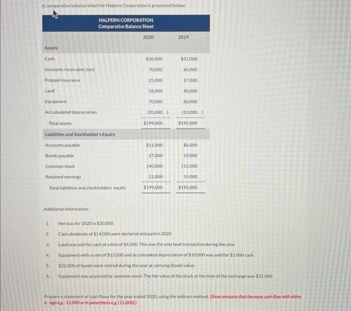 Solved A comparative balance sheet for Halpern Corporation