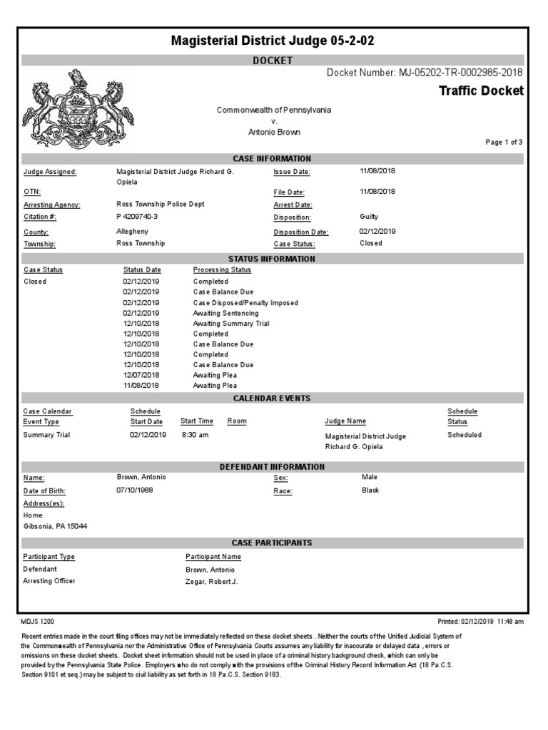 Docket Number MJ05202TR00029852018 Magistrate Criminal Record
