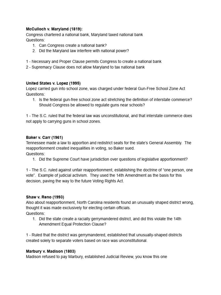The courts ruled that the states cannot tax the federal government, i.e. The supreme court is allowed to nullify an act of the legislative or executive branch that violates. A review of the required cases for the 2021 ap government and politics test learn with. Congress shall have power to make laws with.