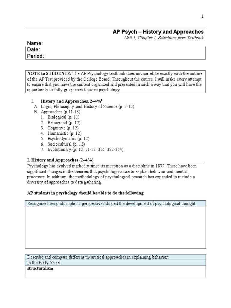 AP Psychology Chapter 1 Notes PDF Psychology Electroencephalography