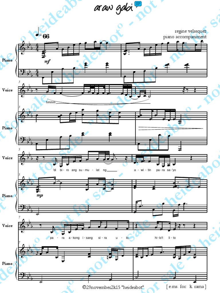 Arawgabi Regine Velasquez , Ryan Cayabyab (piano, lyrics) Sheet