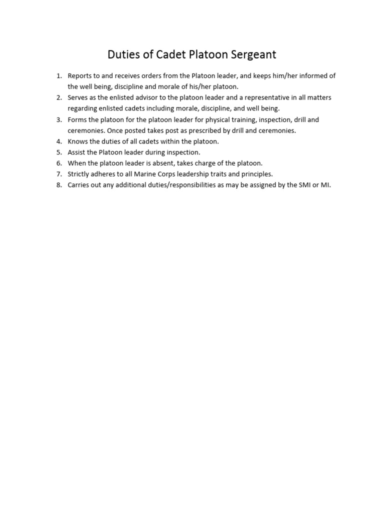 Duties of Cadet Platoon Sergeant PDF