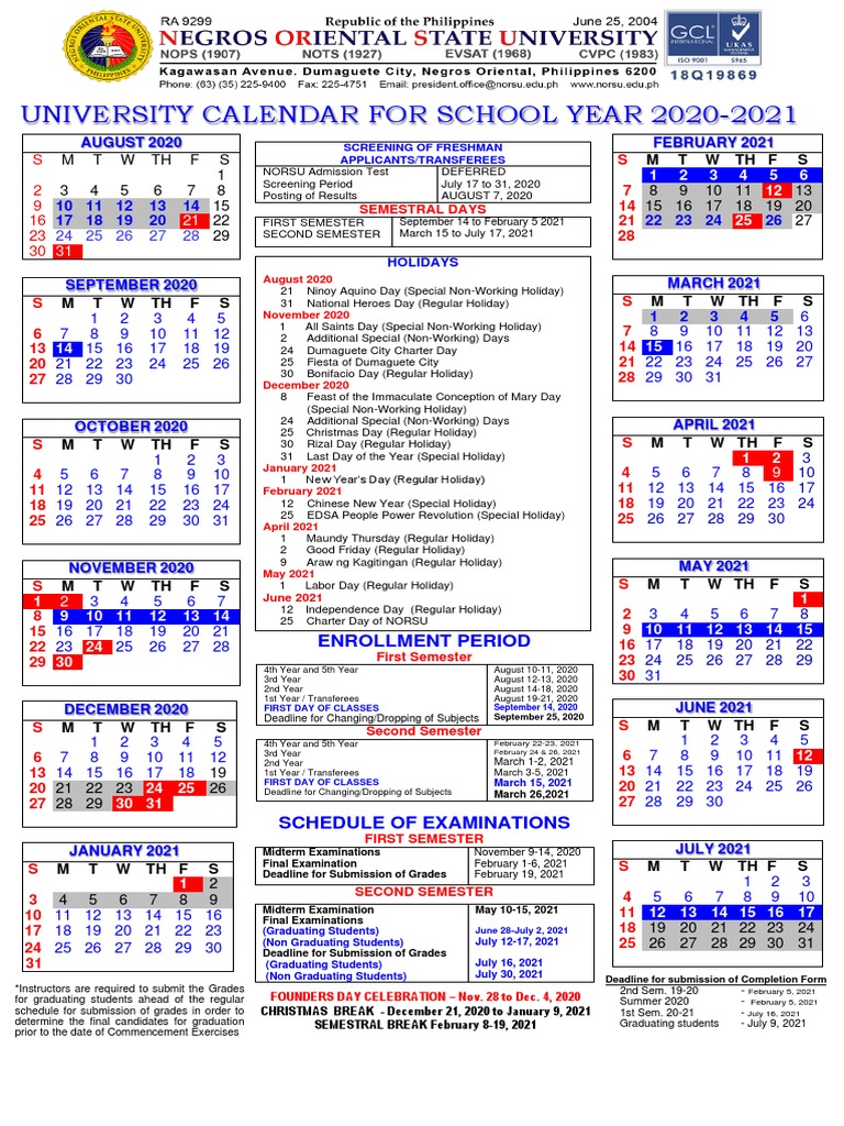 University Calendar For School Year 20202021 M T W TH F S PDF