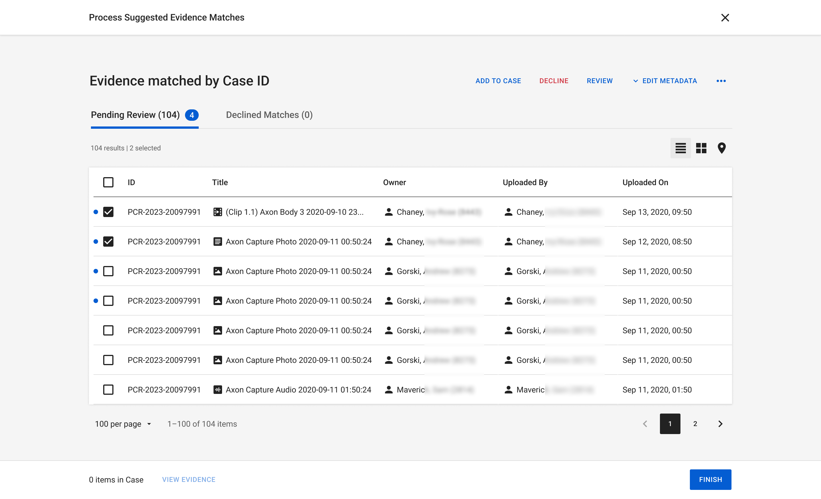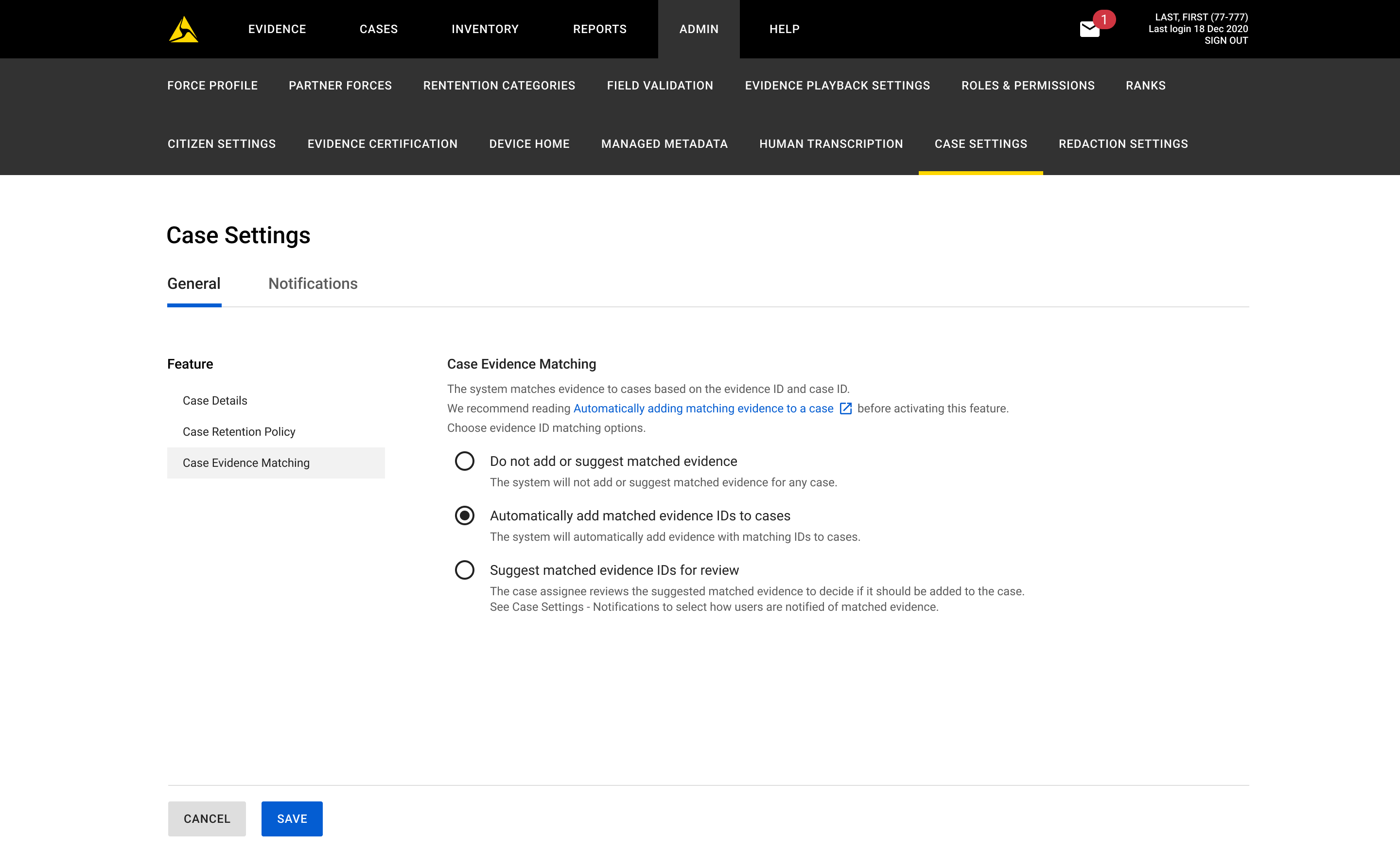 Automated case evidence matching