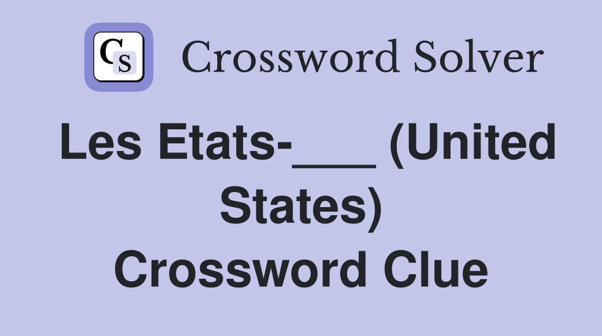 Les Etats___ (United States) Crossword Clue Answers Crossword Solver
