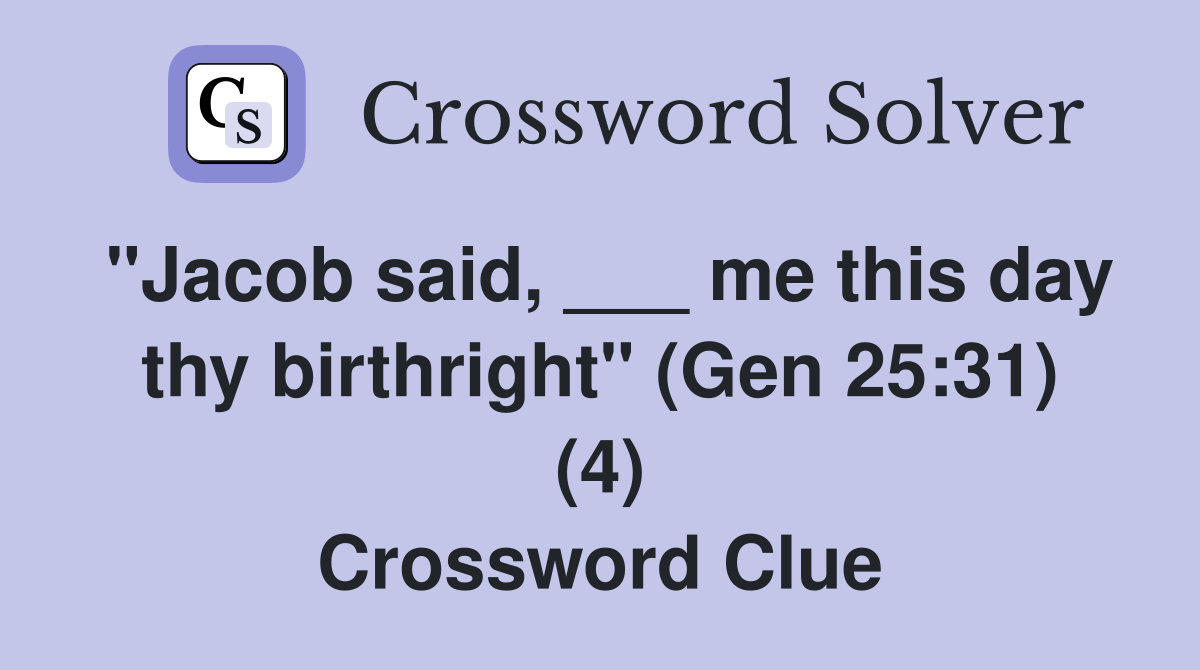 Find the solution for the crossword puzzle clue birthright seller from daily quick crossword. The crossword solver found 30 answers to birthright seller, 4 letters crossword clue. All crossword answers with 4 letters for birthright seller found in daily crossword puzzles: Here is the answer for the crossword clue birthright seller in genesis last seen in. Find out the answer to the crossword clue birthright seller and see related clues and. Here is the answer for the crossword clue birthright seller last seen in usa today puzzle. The crossword solver found 30 answers to birthright seller (4), 4 letters crossword clue. Find the answer to the 16 letter crossword clue birthright seller with 4 letters.