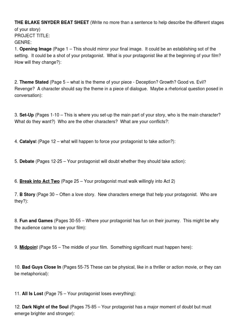 Blake Snyder Beat Sheet Explained Plot (Narrative) Leisure