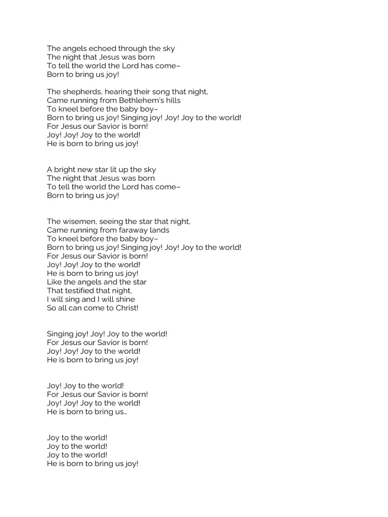 Visit angie killian music for sheet music, music downloads, blog posts, behind the scenes, music videos, and more You’ll find a lovely born to bring us joy flip chart that uses custom illustrations designed specifically to fit the lyrics of this. He is born to bring us joy!. Born to bring us joy!
