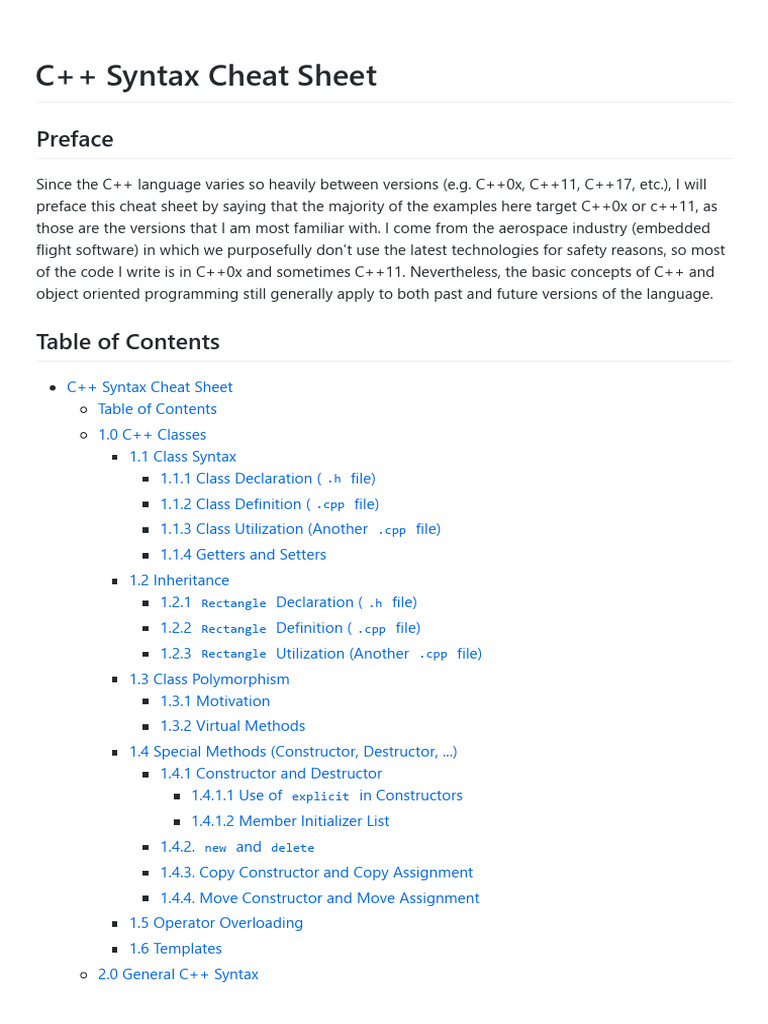 C++ Syntax Cheat Sheet Download Printable PDF Templateroller