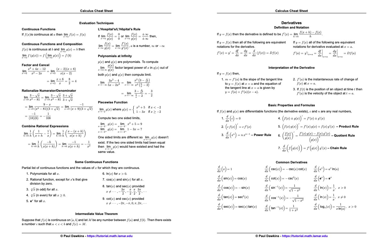 A comprehensive cheat sheet for calculus 1 covering limits, derivatives, integrals, and related topics. A comprehensive cheat sheet for calculus 1 topics, including limits, derivatives, integrals, and applications. Use this cheat sheet as a reference for the most important formulas, rules, equations, and so on that you need for calculus. That is why we have prepared this calculus cheat sheet,.