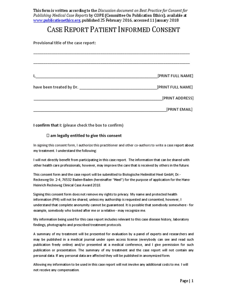 When you submit to bmj case reports you will be required to upload 4 documents: This form is for patients or proxies who agree to have their case report published in the journal. This form is for patients or their representatives to give consent for the publication of images or. I hereby give my consent for images or other clinical information relating to my case to be.