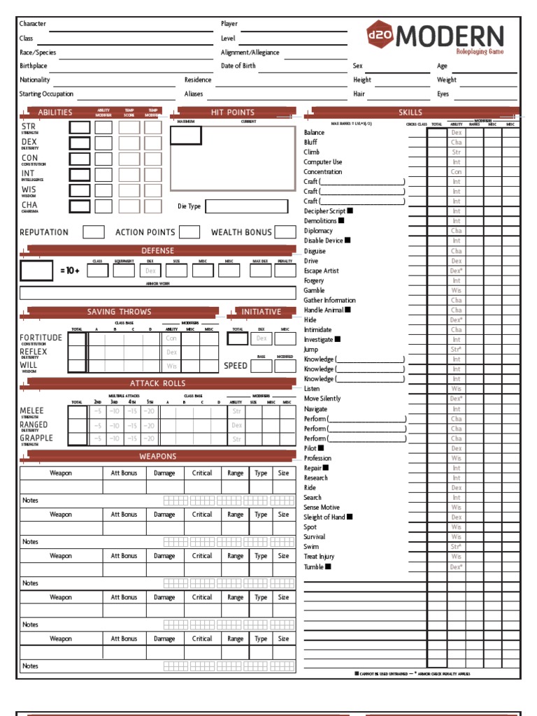 Speed up character creation with roll20’s free character creator. • created by patrick murphy 3/05 • a mad irishman. D20 modern character sheet 1.5 • ©2002 wizards of the coast, inc. • created by patrick murphy 1/03 • a mad irishman. D20 modern character sheet 2.1 • ©2005 wizards of the coast, inc.