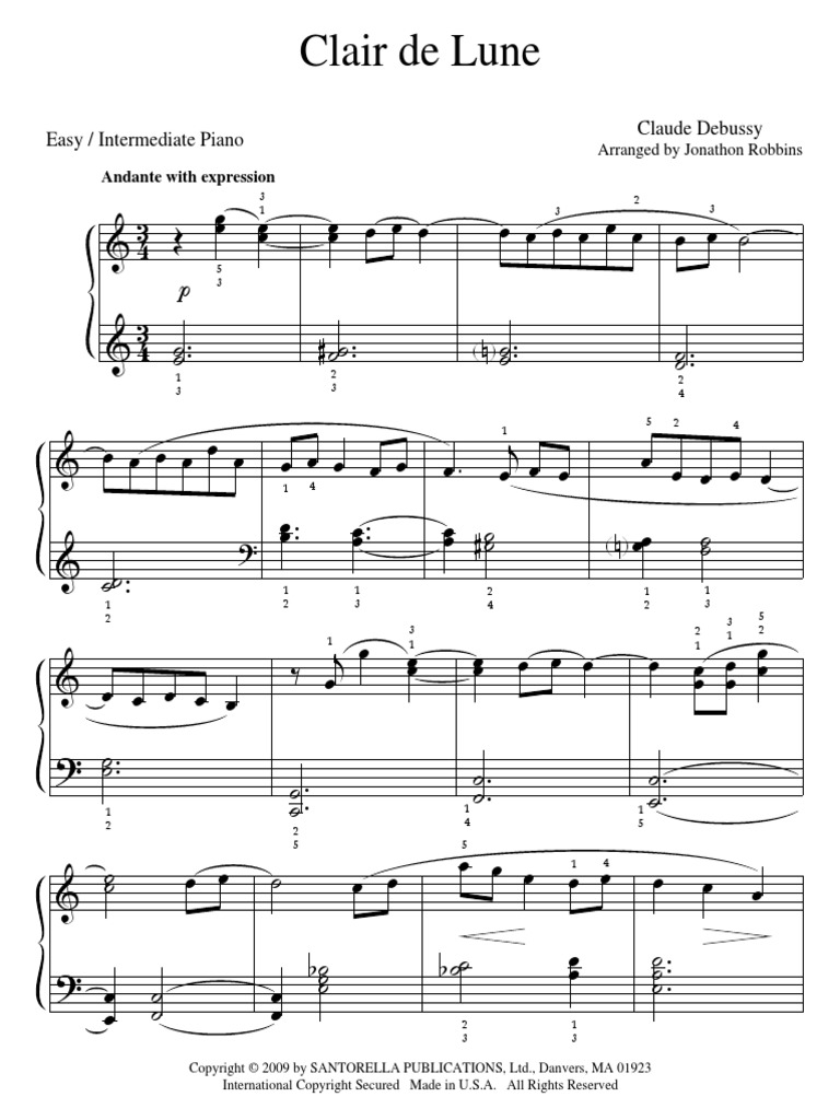 Clair De Lune Intermediate Sheet Music - Designed to be used both during lessons and while practicing at home, the practice guide will save time and effort by guiding and structuring your.