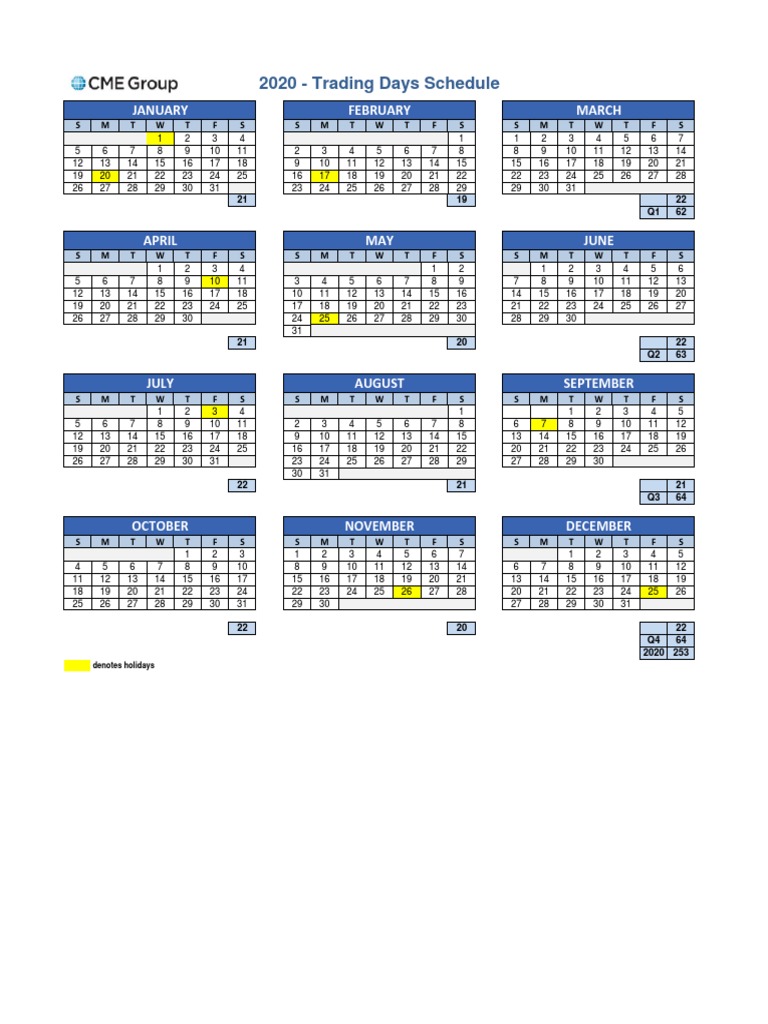 CME Group Trading Days Schedule PDF Sports Business