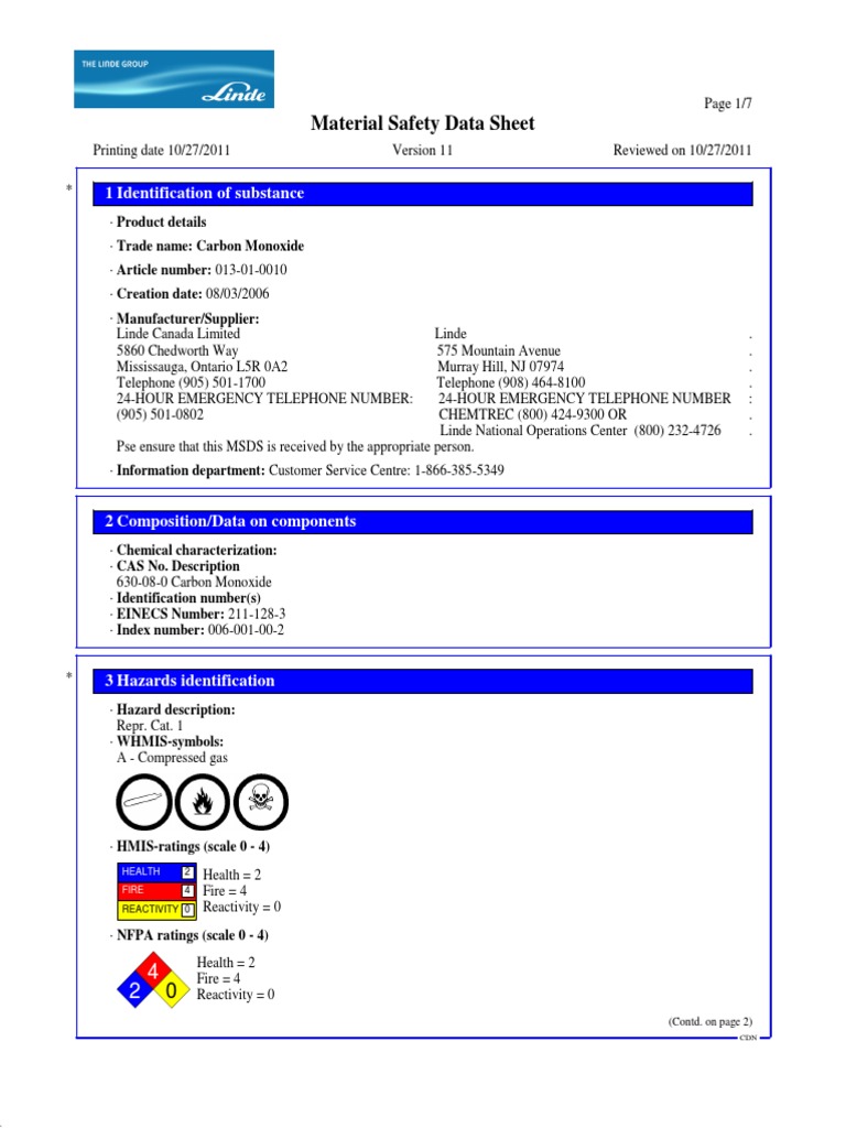 Carbon Monoxide MSDS by Linde PDF Dangerous Goods Personal