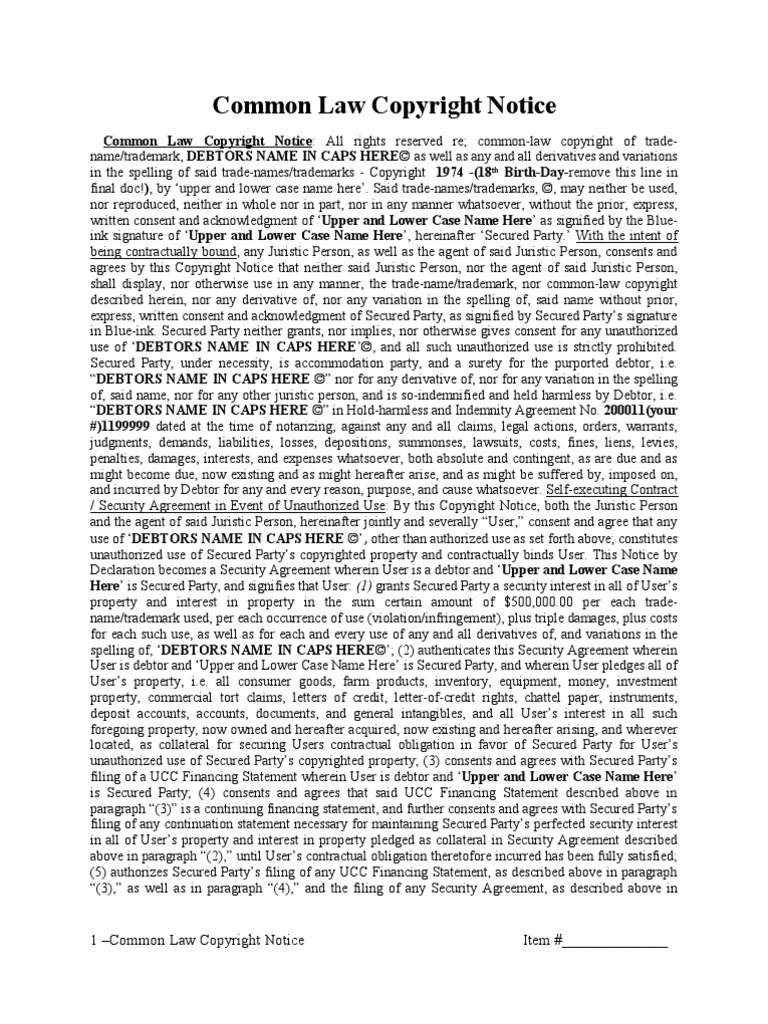Common Law Copyright Notice PDF Security Interest Uniform