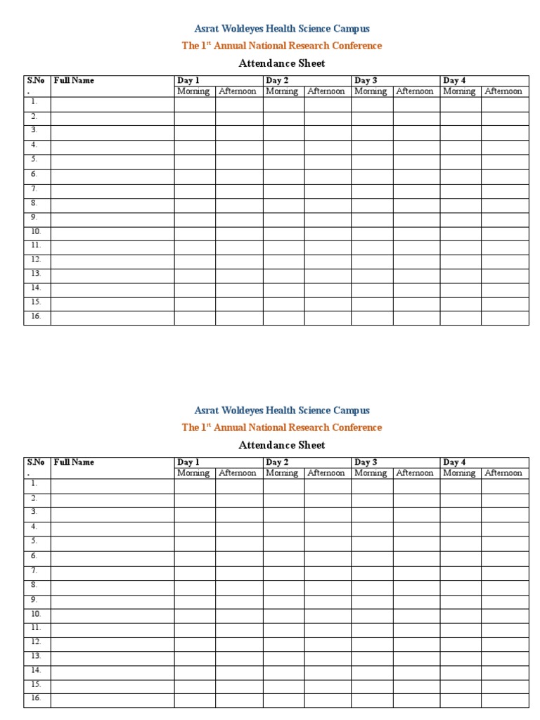Conference Attendance Sheet PDF