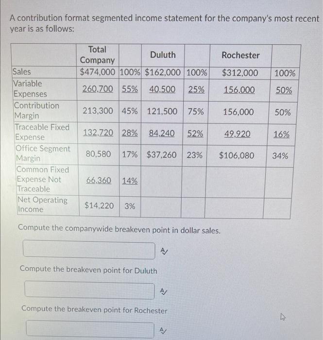 This format is called the contribution margin format for an income statement because it shows the contribution margin. As a result, many companies prepare an income statement for internal use with the format shown below. Prepare a segmented income statement using the contribution format;