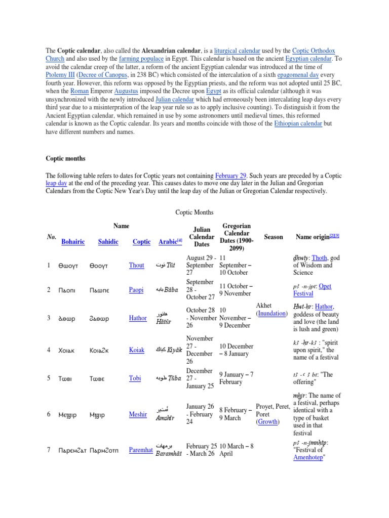 The Coptic Calendar PDF Ancient Egypt Religion And Belief