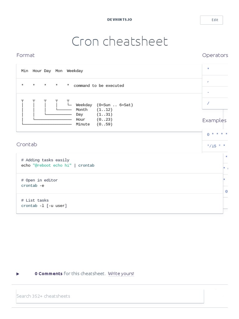Cron Command Cheat Sheet & Quick Reference