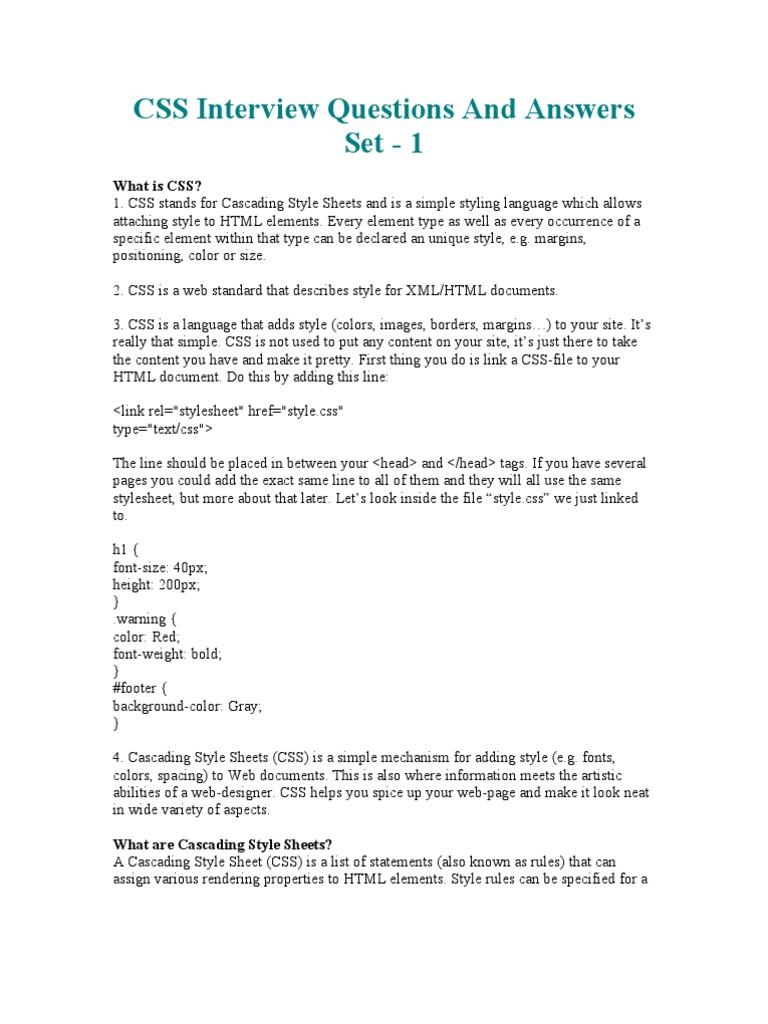 CSS Interview Questions and Answers Set Cascading Style Sheets Html