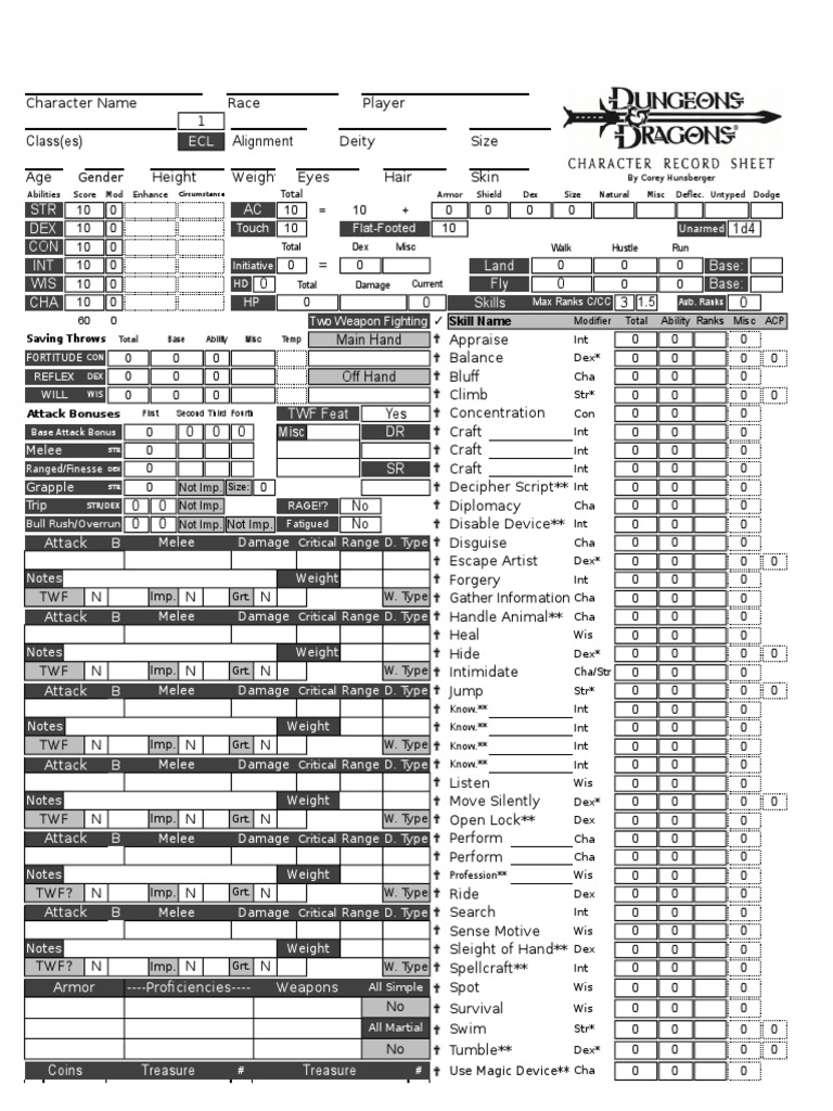 Printable Dnd Character Sheets
