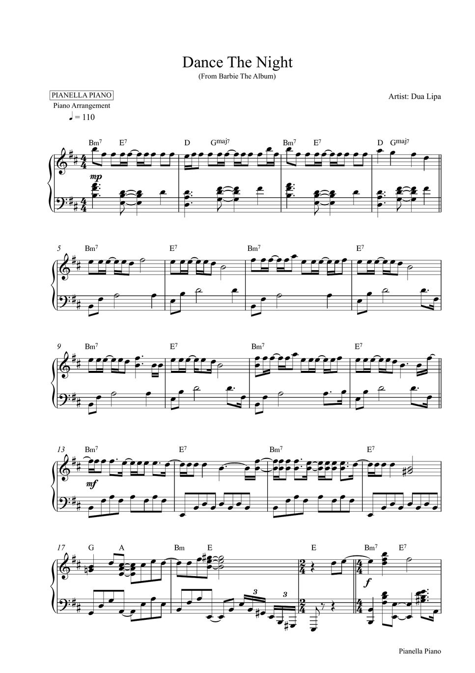 Dua Lipa Dance The Night (Piano Sheet) Partitura by Pianella Piano