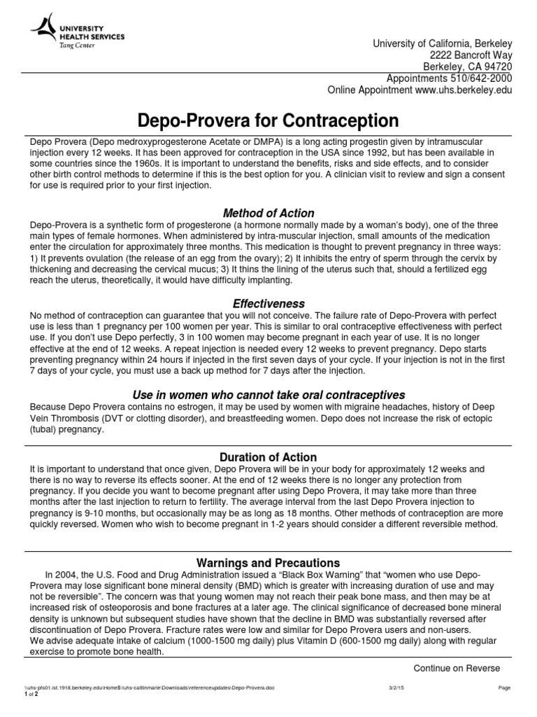 Depo Provera Information PDF PDF Birth Control Public Health