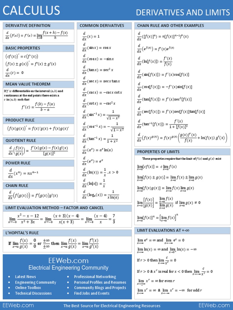 Calculus Cheat Sheet Limits, Derivatives, Integrals Download