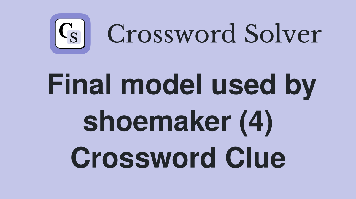 Final model used by shoemaker (4) Crossword Clue Answers Crossword