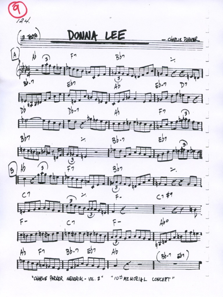 A¨ f7 b¨7 b¨€7 e¨7 a¨ e¨€7 d7 5 d¨ d¨€7 a¨ f7 9 b¨7 b¨€7 e¨7 13 a¨ f7 b¨7 17 c7 f‹ c7(#9) f‹ 21 c7 f‹ a¨º7 26 openstudionetwork.com Buy fully licensed online digital, transposable, printable. Digital sheet music for donna lee by charlie parker scored for lead sheet; Jazz lead sheet find lead sheet and start.