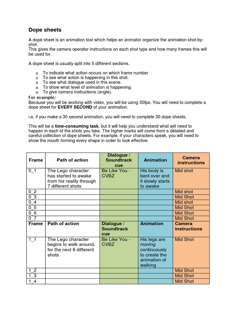 JL01 Jonny ward BTEC Stop Motion Animation Unit 33 & 5 Exposure Sheets