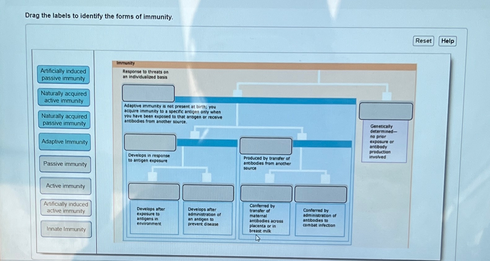 Solved Drag the labels to identify the forms of immunity.