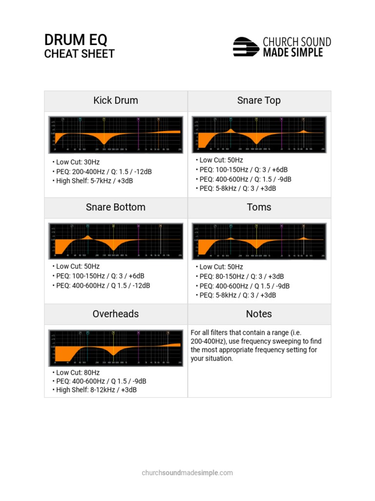 Drums Eq Cheat Sheet - For all filters that contain a range (i.e. Whether you're recording a live drum kit, using samples, or vst instruments, this cheat sheet is a valuable resource for any engineer looking to.