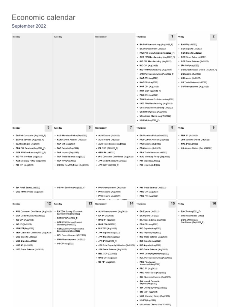 Economic Calendar PDF