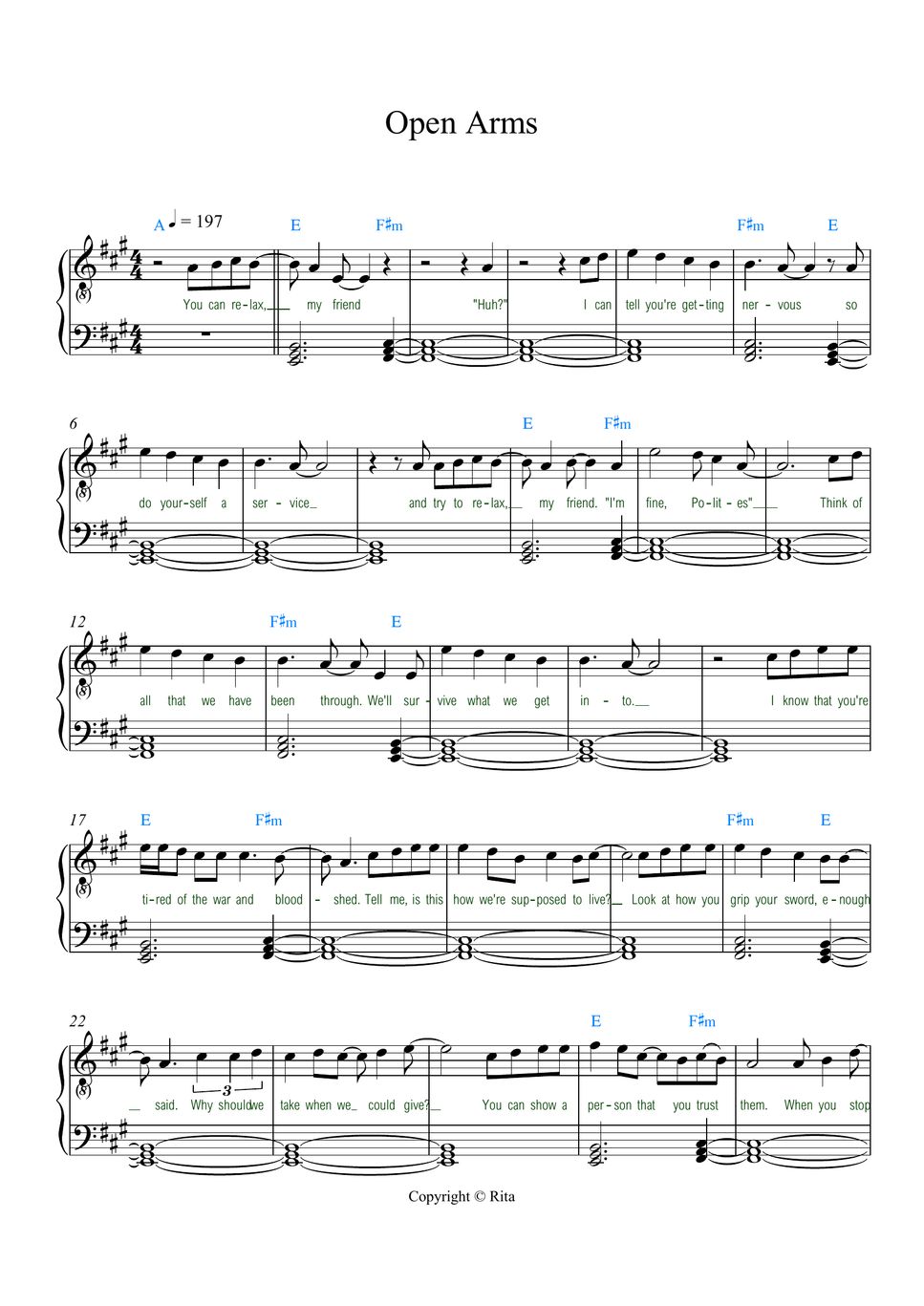 RiveraHerrans Open Arms from Epic The Musical (Accurate easy