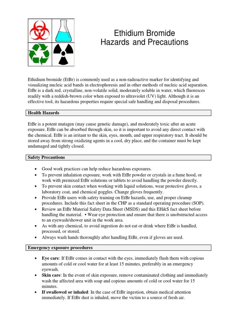 Urport to be all inclusive and shall be used only as a guide. First aider needs to protect himself. The information in this document is based on the present state of our knowledge and is. Show this safety data sheet to the doctor in attendance. (ethidium bromide) the following applies to aromatic amines in general: Immediate medical attention is required. Rinse immediately with plenty of. Show this material safety data sheet to the doctor in attendance. View or download the ethidium bromide msds (material safety data sheet) or sds for 111608 from merck. According to the results of its assessment, this substance is not a pbt or a vpvb.