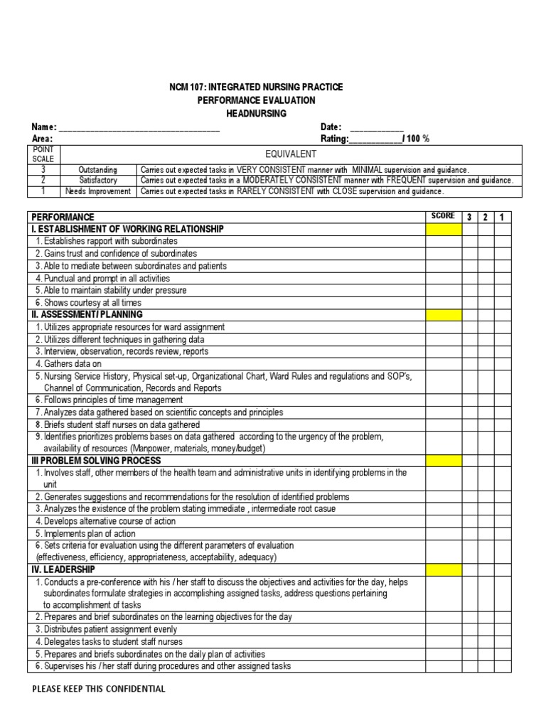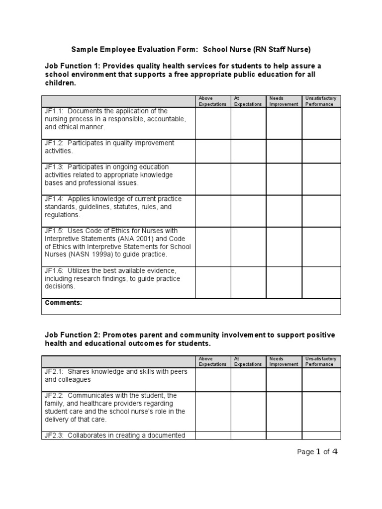 Our guide includes everything you need to create and customize a performance evaluation form for nursing staff, from detailed templates to tips on. The document is a staff nurse performance evaluation form that assesses nurses across several competency areas. This document contains information about performance evaluation methods for a band 5 staff nurse, including.