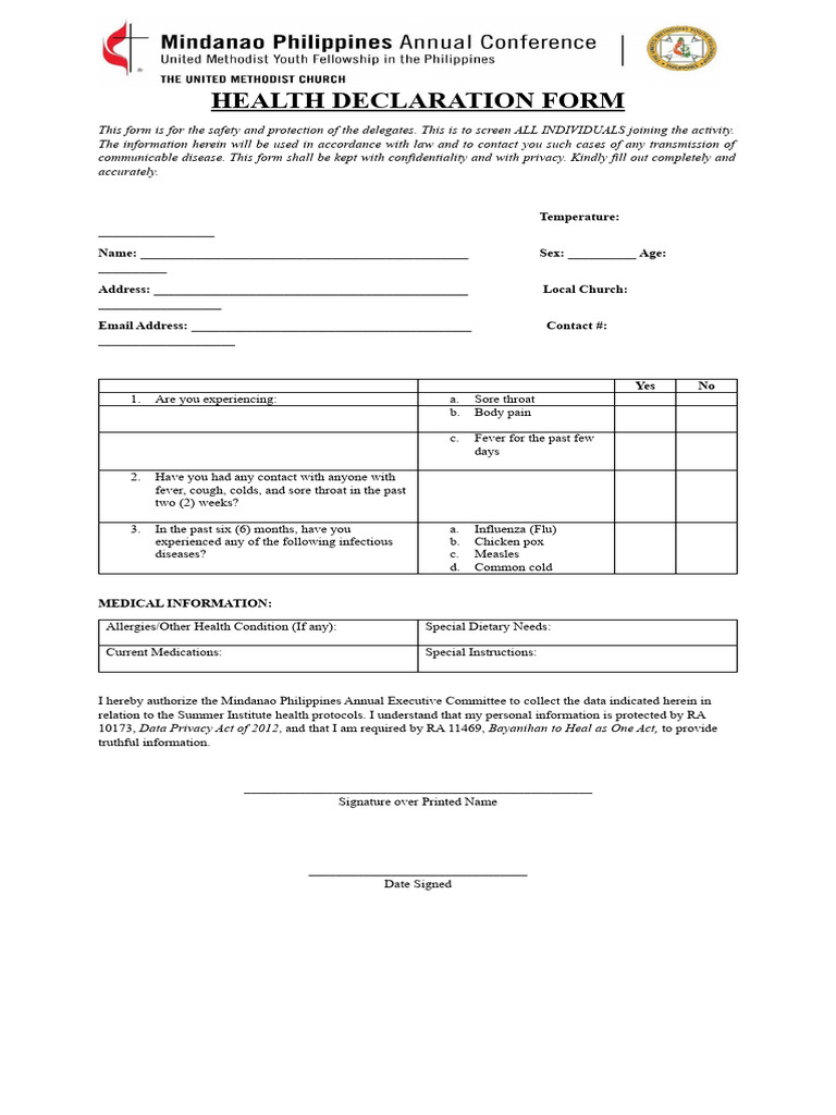 HEALTH DECLARATION FORM PDF Common Cold Clinical Medicine