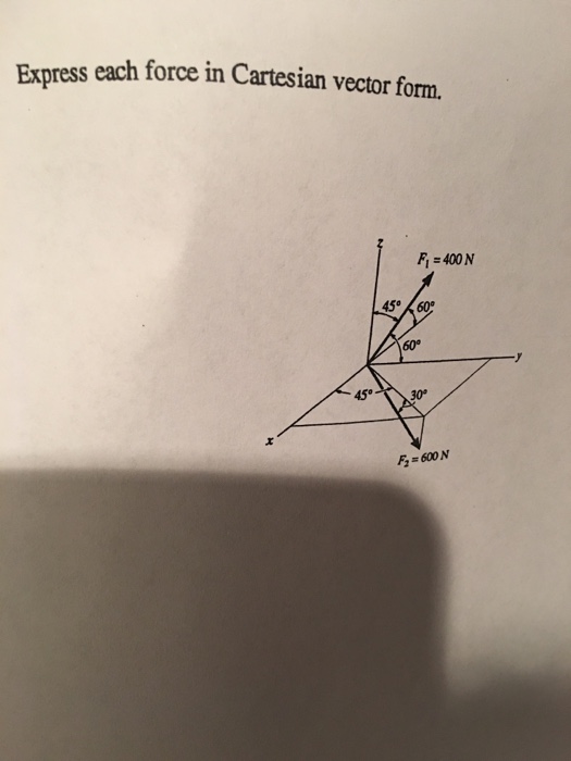 Express Each Force In Cartesian Vector Form - Find the magnitude and coordinate direction angles of. It’s important to know how we can express these forces in cartesian vector form as it helps us solve three dimensional problems. Express each force in cartesian vector form and then determine the resultant force fr. Express each of the forces in cartesian vector form and determine the magnitude and coordinate direction angles of the resultant force. Express each of the forces in cartesian vector form and determine the magnitude and coordinate direction angles of the resultant force. Express each of the three forces acting on the support in cartesian vector form and determine the magnitude of the resultant force and its.