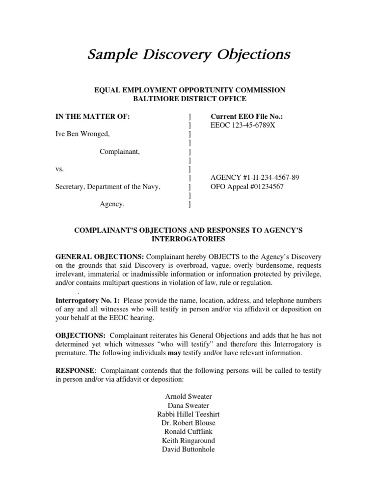 Whether you’re responding to interrogatories, requests for admission (rfas), or requests for production (rfps), objections can help you protect your client and limit. Elsewhere on this website, we talk about the importance of forcing defendants to provide meaningful answers to. It also (hopefully) provides an easy. Complainant hereby objects to the agency’s discovery on the grounds that said discovery is.