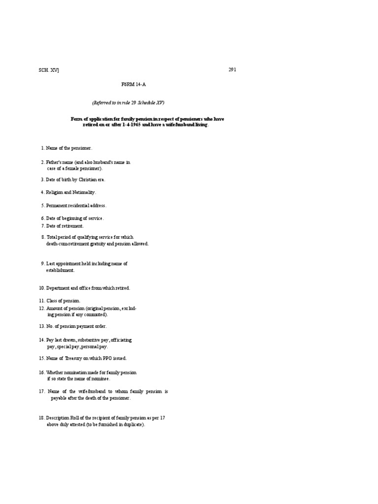 Form 14 A Form For Application of Family Pension in Ro Pensioners Who