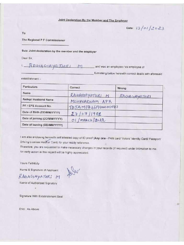 Covering Letter For Form 13 of PF Authorities Government Politics