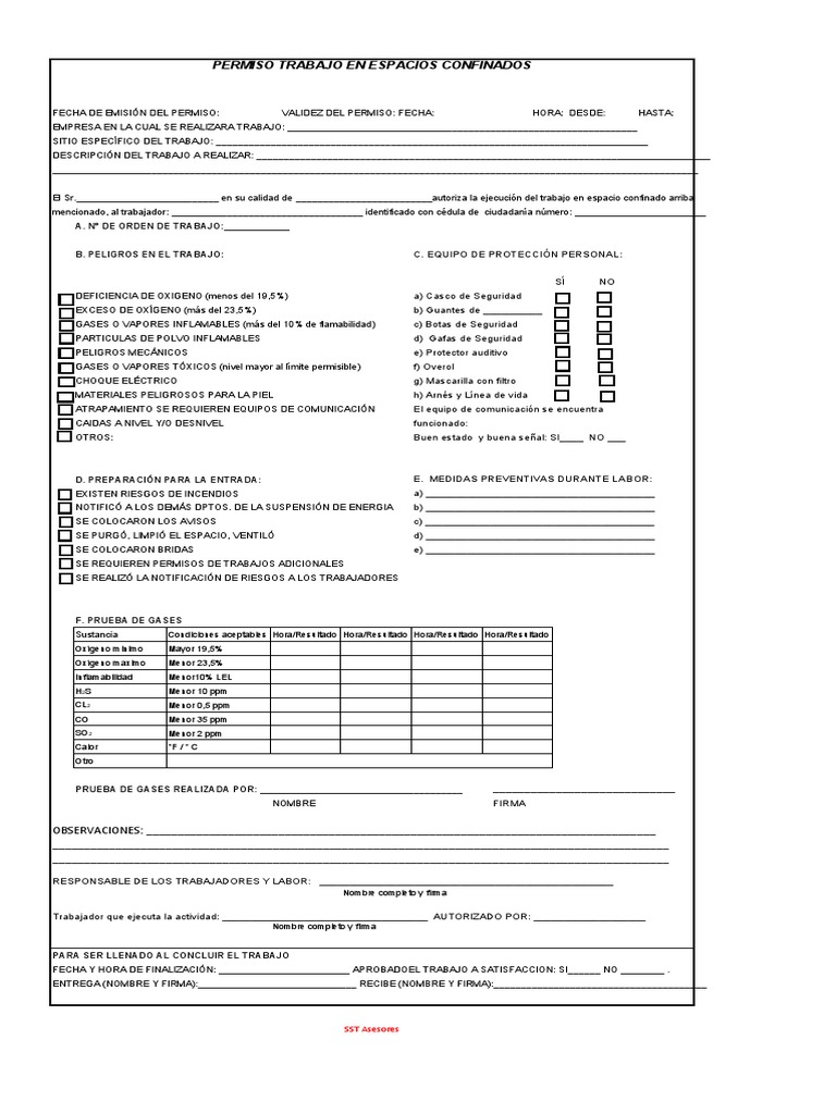Formato De Permiso De Trabajo En Espacios Confinados Universidad De