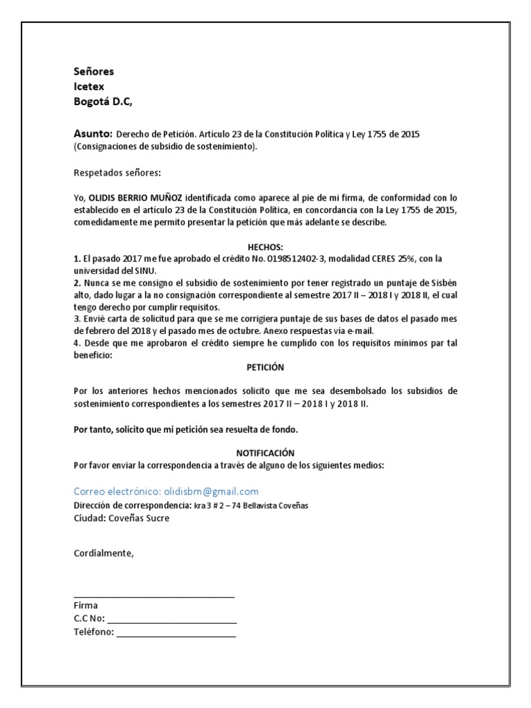 Modelo Derecho De Peticion Colombia Image to u