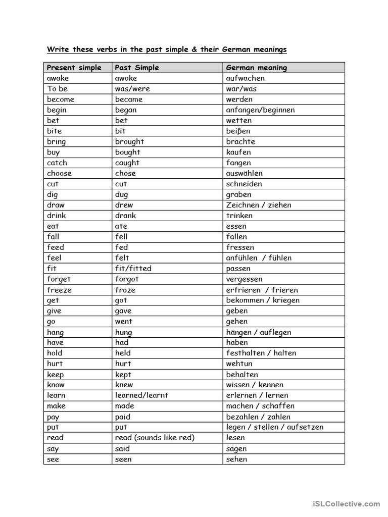 Weak verbs, strong, and mixed verbs. Weak verbs (schwache verben) do not change. Write the infinitive or a conjugated form and the german conjugator will provide you a list of all the verb tenses and persons: Conjugate more than 23,000 regular and irregular german verbs. In german verbs are categorized into three categories:
