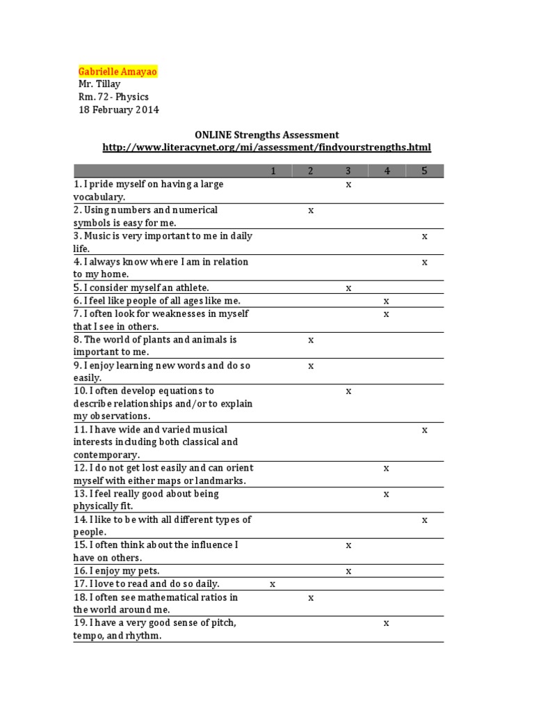 Free Printable Strengthsfinder Test Free Templates Printable