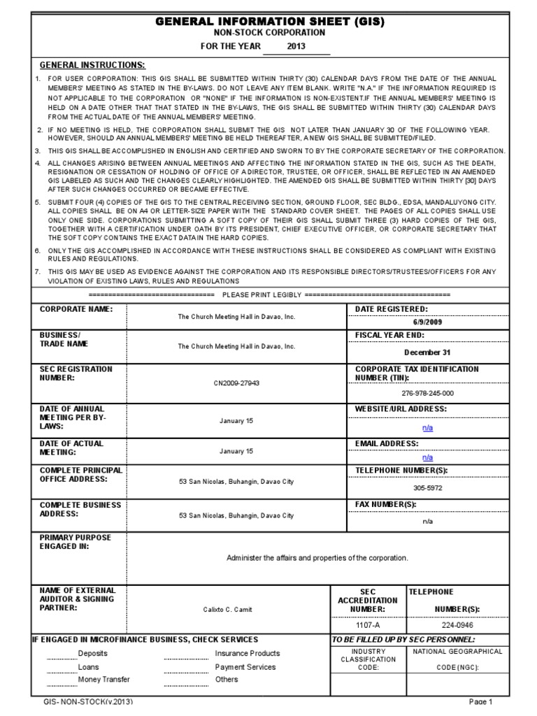 This gis is to be submitted within thirty (30) calendar days. This gis shall be accomplished in english and certified and sworn to by the corporate secretary of the corporation. General instructions on the use of this general information sheet (gis) 1. Learn what a general information sheet (gis) is, who needs to file it, when to submit it, and.